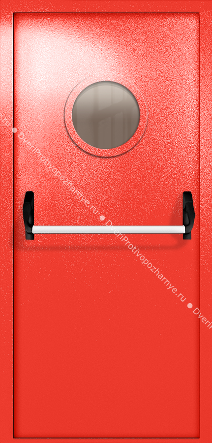 Однопольная дверь ei-60 с круглым стеклом и ручкой «антипаника» (цвет красный RAL 3020) Арт-31