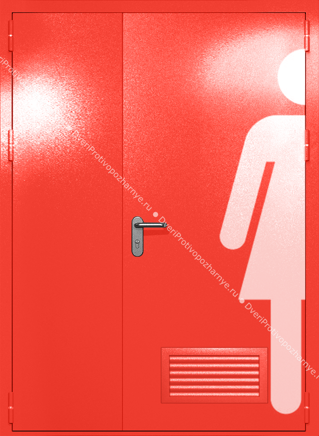 Полуторапольная глухая дверь ei-60 с обозначением санузла и вентиляцией (цвет красный RAL 3020) Арт-41